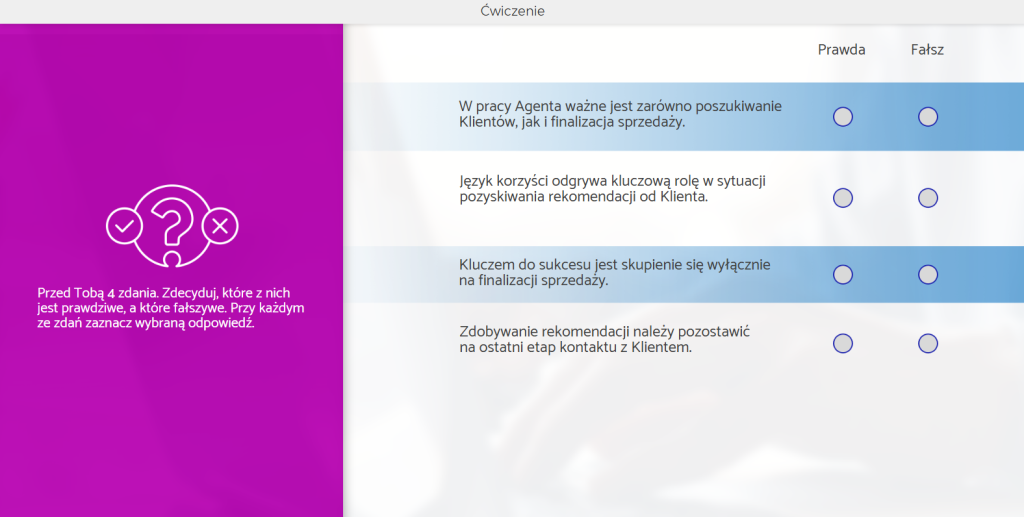 - rozpoznawać sygnały zakupowe i prowadzić klienta przez kolejne etapy procesu,