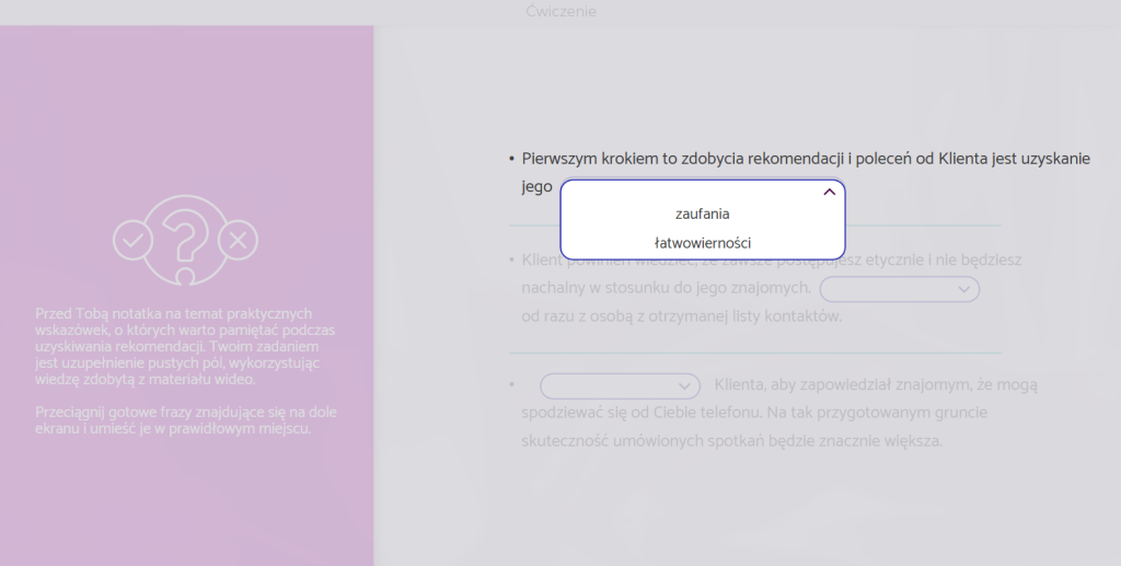 - zdobywać rekomendacje w sposób profesjonalny, budujący zaufanie i pozytywny wizerunek,