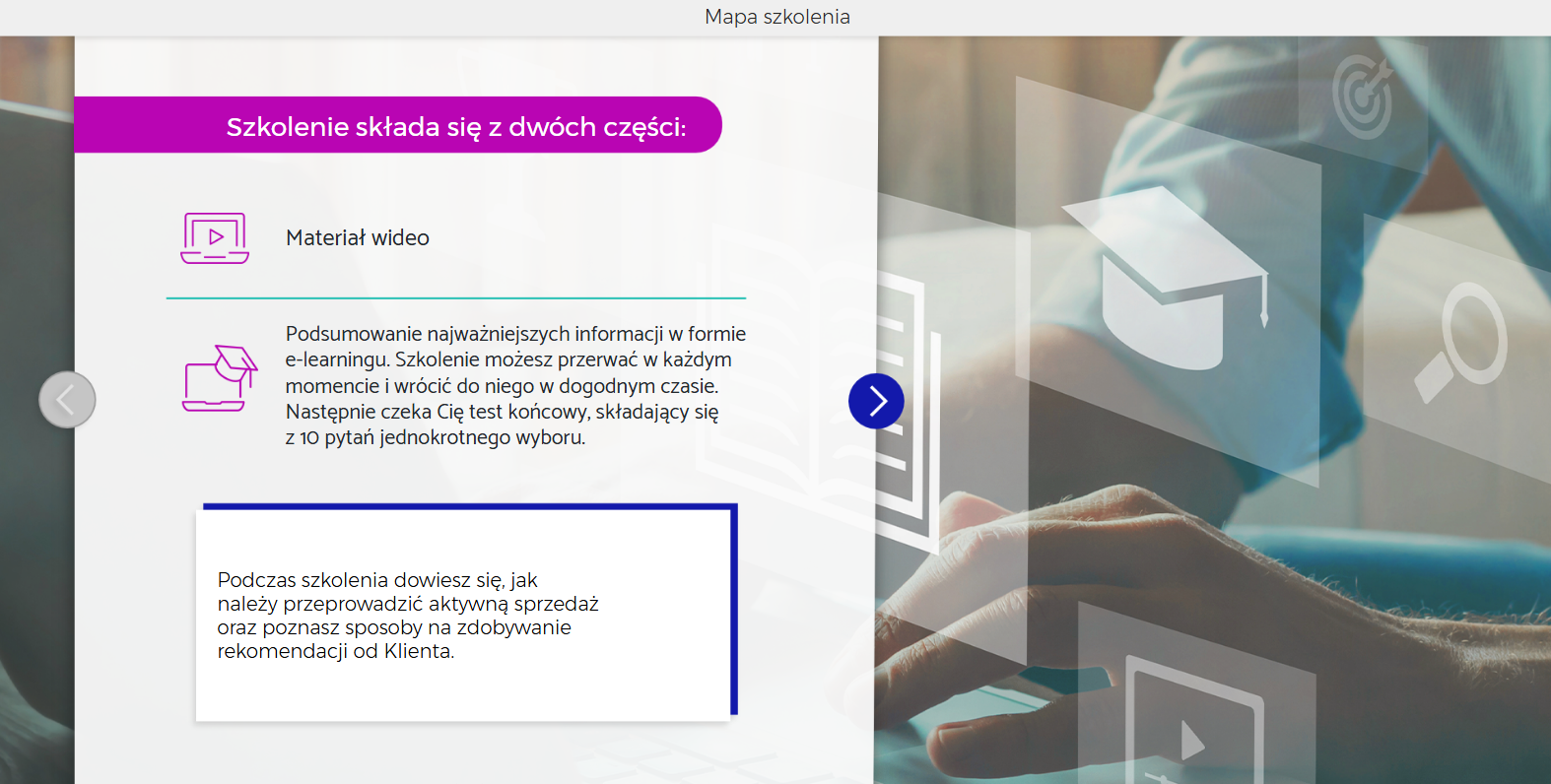 Od 1 października 2018 roku obowiązuje nowa ustawa o dystrybucji ubezpieczeń. Wprowadza ona wiele zmian prawnych dla agentów ubezpieczeniowych i brokerów. W odpowiedzi na te zmiany przygotowaliśmy szkolenia e-learningowe, które z jednej strony precyzyjnie wyjaśniają nową rzeczywistość prawną, a z drugiej pozwalają na realizację wymogu uczestnictwa w 15 godzinach szkoleń rocznie. Aktywna sprzedaż i zdobywanie rekomendacji jest częścią cyklu IDD.