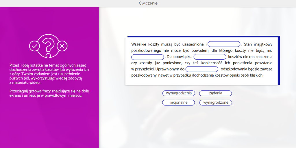 Od 1 października 2018 roku obowiązuje nowa ustawa o dystrybucji ubezpieczeń. Wprowadza ona wiele zmian prawnych dla agentów ubezpieczeniowych i brokerów. W odpowiedzi na te zmiany przygotowaliśmy szkolenia e-learningowe, które z jednej strony precyzyjnie wyjaśniają nową rzeczywistość prawną, a z drugiej pozwalają na realizację wymogu uczestnictwa w 15 godzinach szkoleń rocznie. Likwidacja szkód osobowych – rodzaje roszczeń jest częścią cyklu IDD.