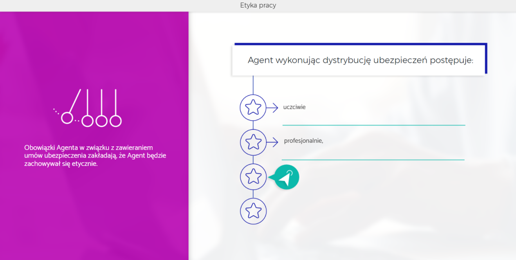 Od 1 października 2018 roku obowiązuje nowa ustawa o dystrybucji ubezpieczeń. Wprowadza ona wiele zmian prawnych dla agentów ubezpieczeniowych i brokerów. W odpowiedzi na te zmiany przygotowaliśmy szkolenia e-learningowe, które z jednej strony precyzyjnie wyjaśniają nową rzeczywistość prawną, a z drugiej pozwalają na realizację wymogu uczestnictwa w 15 godzinach szkoleń rocznie. Obowiązki agenta w świetle ustawy o dystrybucji ubezpieczeń jest częścią cyklu IDD.
