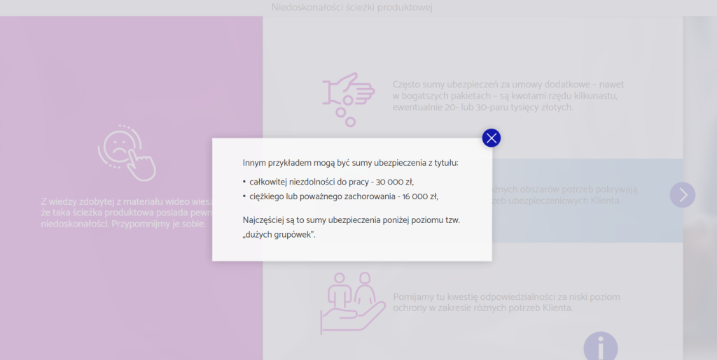 Umiejętność skutecznej prezentacji oferty oraz prowadzenia negocjacji z klientem to jeden z kluczowych elementów profesjonalnej sprzedaży ubezpieczeń. Szkolenie e-learningowe „Prezentacja rozwiązań i negocjacje cenowe” łączy wiedzę z zakresu komunikacji i technik sprzedaży z zasadami wynikającymi z Dyrektywy IDD, pomagając doradcom działać zgodnie z prawem i etyką zawodową.