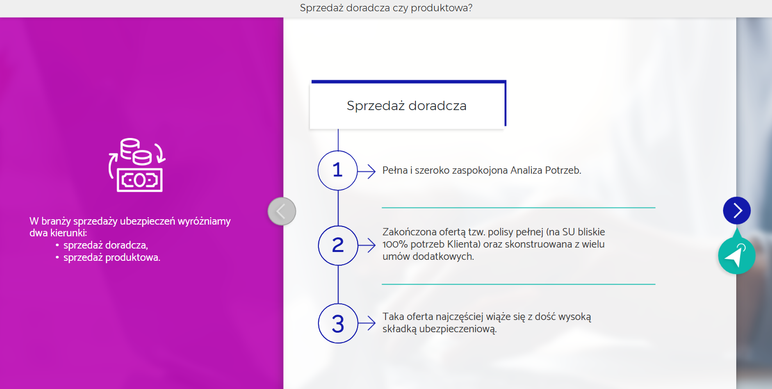 Umiejętność skutecznej prezentacji oferty oraz prowadzenia negocjacji z klientem to jeden z kluczowych elementów profesjonalnej sprzedaży ubezpieczeń. Szkolenie e-learningowe „Prezentacja rozwiązań i negocjacje cenowe” łączy wiedzę z zakresu komunikacji i technik sprzedaży z zasadami wynikającymi z Dyrektywy IDD, pomagając doradcom działać zgodnie z prawem i etyką zawodową.